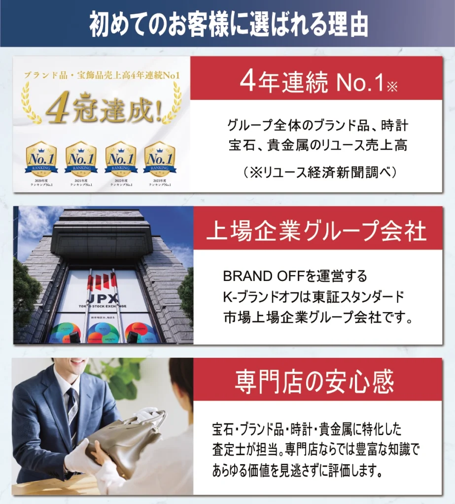 電話での対応も丁寧でしたし、来店してからの査定もスピーディーで、金額も他社と比べて高かったため買取をお願いしました。また機会があれば利用したいです。